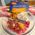 Prep the Burger Patties: In a large mixing bowl, combine the ground beef, egg, French onion soup mix, seasoning salt, and Worcestershire sauce. Mix until just combined, make sure not to over-mix because it will make the burgers dense and tough.