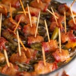 Pre-Bake the Bundles: Place the baking dish in the preheated oven and bake for about 10-15 minutes. Remove the pan from the oven and drain the grease from the dish. (This step allows the bacon to get a bit crispy before adding the glaze.